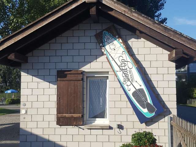 Bestandteil der Badi Speck. Die Bushaltestelle Staad SG, Speck befindet sich