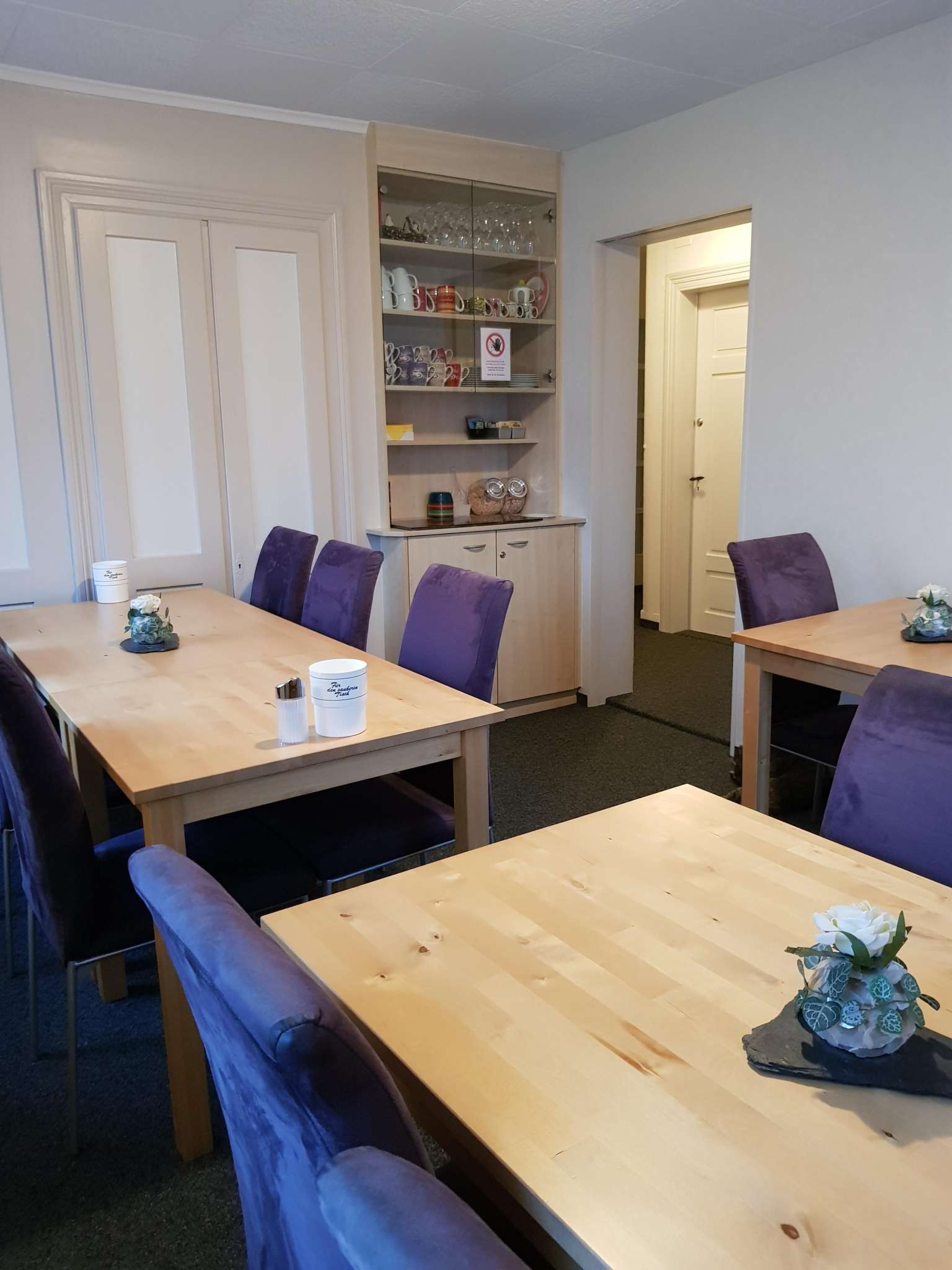 In den Zimmern hat es ein Waschbecken, die Dusche und Toilette befinden sich auf der Etage.
