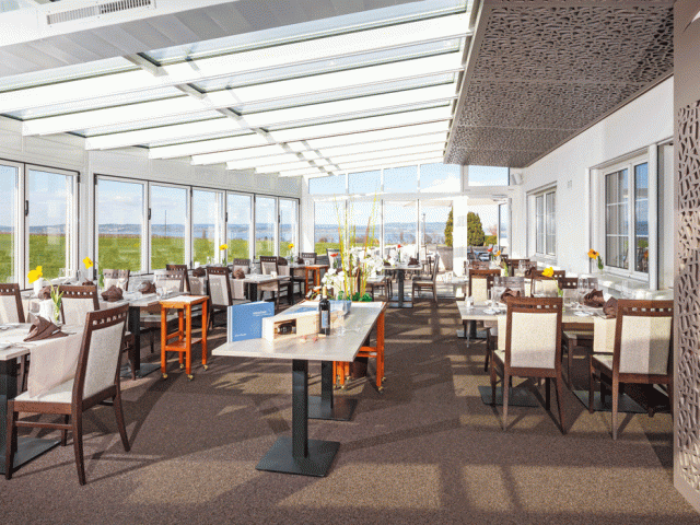 Das Restaurant des Hotels Seemöwe, auf einem Hügel gelegen und mit beeindruckendem Weitblick auf Wiesen und den Bodensee, überzeugt mit seinem vielfältigen Angebot. Dank grossem Bankettsaal und gepflegter Gartenanlage ist die Seemöwe auch für Gesellschaften die richtige Wahl.